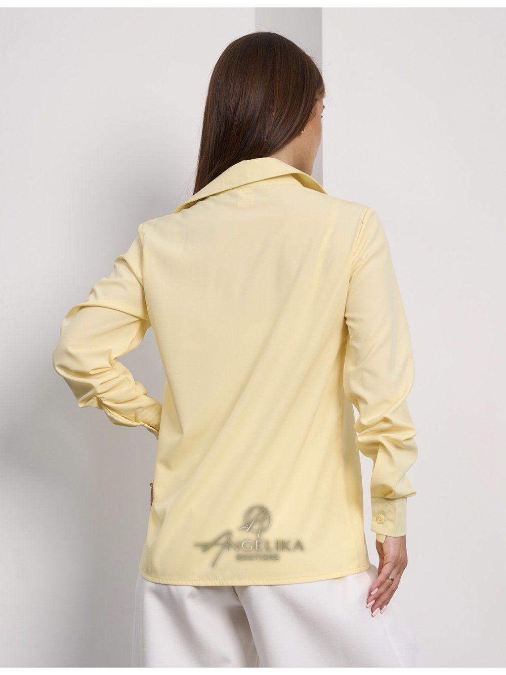 Klasická dámská košile s knoflíky a rovným střihem, vyrobená z pevné soft látky.