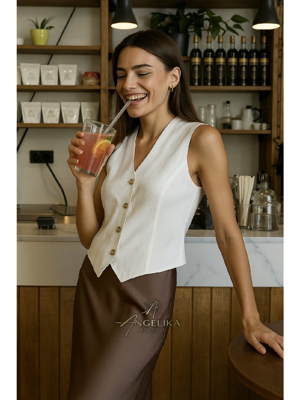 Vesta lze nosit jako samostatný prvek nebo v kombinaci s košilí nebo halenkou.