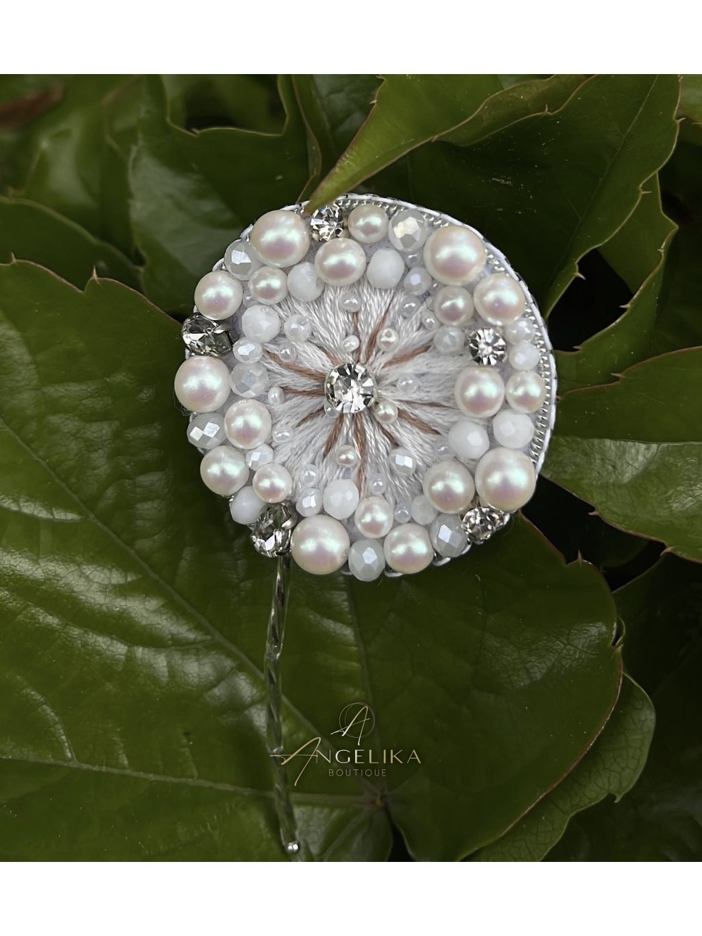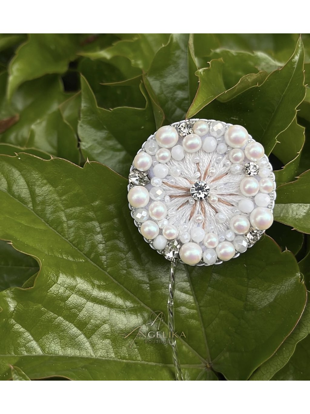 Kvalitní ručně vyráběná brož z materiálů pořízených v České republice.