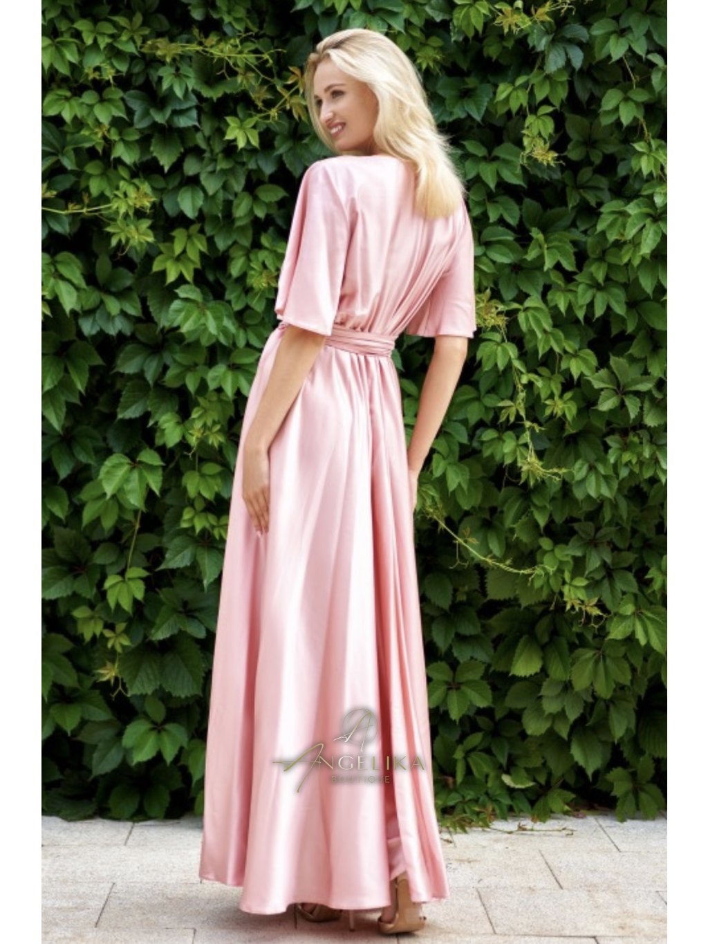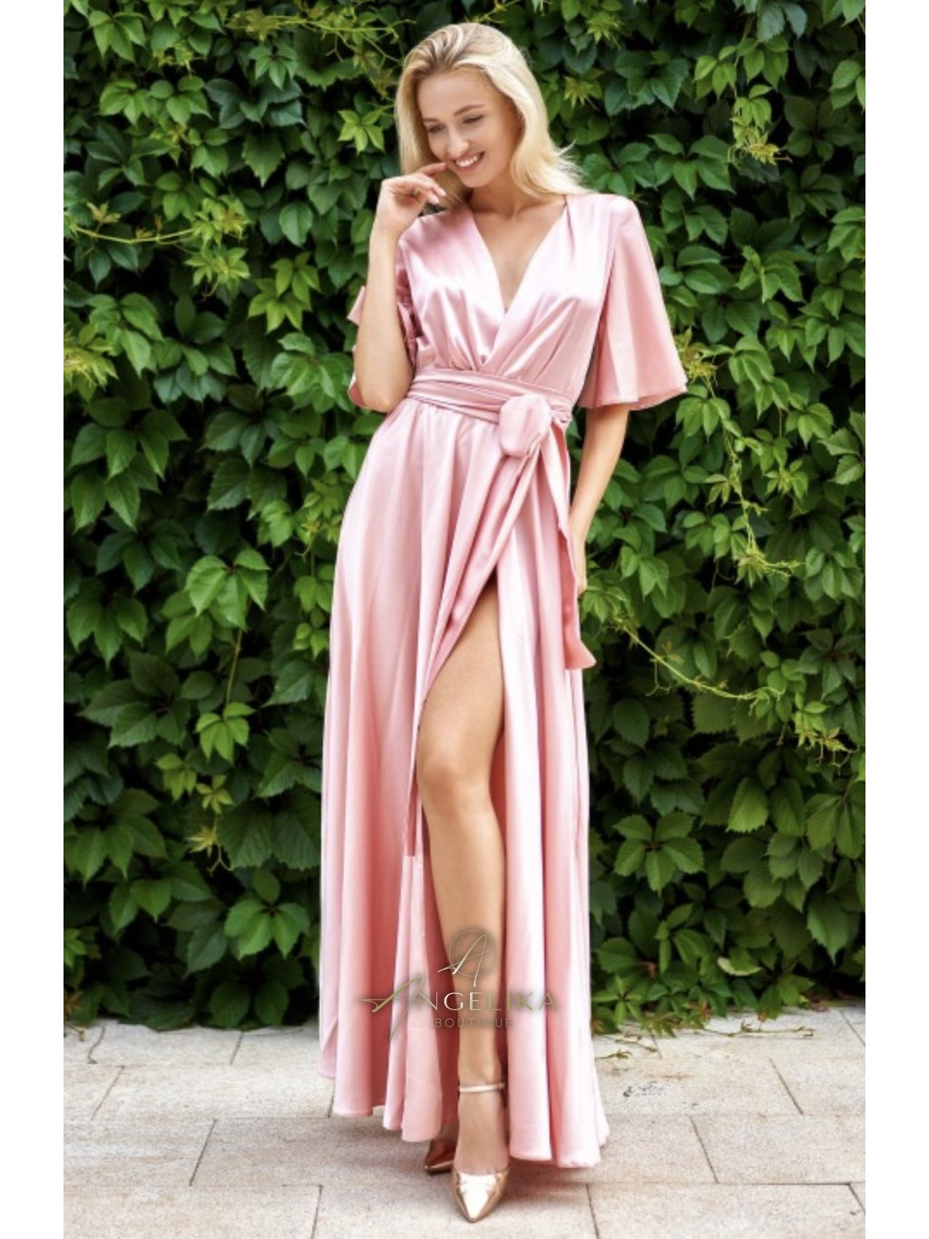 Módní večerní šaty - vyrobené z ušlechtilého materiálu "Armana" s krásným leskem zdůrazní krásu a styl jejich majitelek a budou vypadat vhodně na jakékoli slavnostní události. Takové elegantní večerní šaty přitáhnou pozornost na každé párty a učiní obraz jemným a tajemným. Nádherné maxi šaty s krátkými, volnými rukávy, vykrojeným výstřihem a elastickým pasem. Střih od pasu podél linie boků dodává outfitu pikantní nádech. V takových šatech se budete cítit jako opravdová královna a jistě upoutáte pozornost všech kolem sebe.