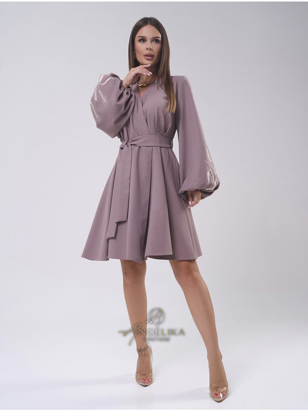 Model s dlouhými objemnými rukávy na gumičky, zdobený výšivkou.
